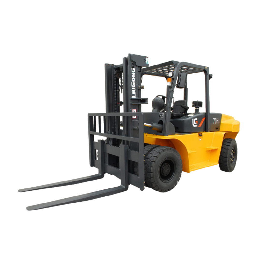 LiuGong 2070H, 15,500 pounds capacity, Cummins diesel engine, Power shift transmission, 177″ 3 stage mast, Side shift carriage, Fork positioners, 96″ forks, Solid tires, Fully enclosed operators cab with A/C and Heat.